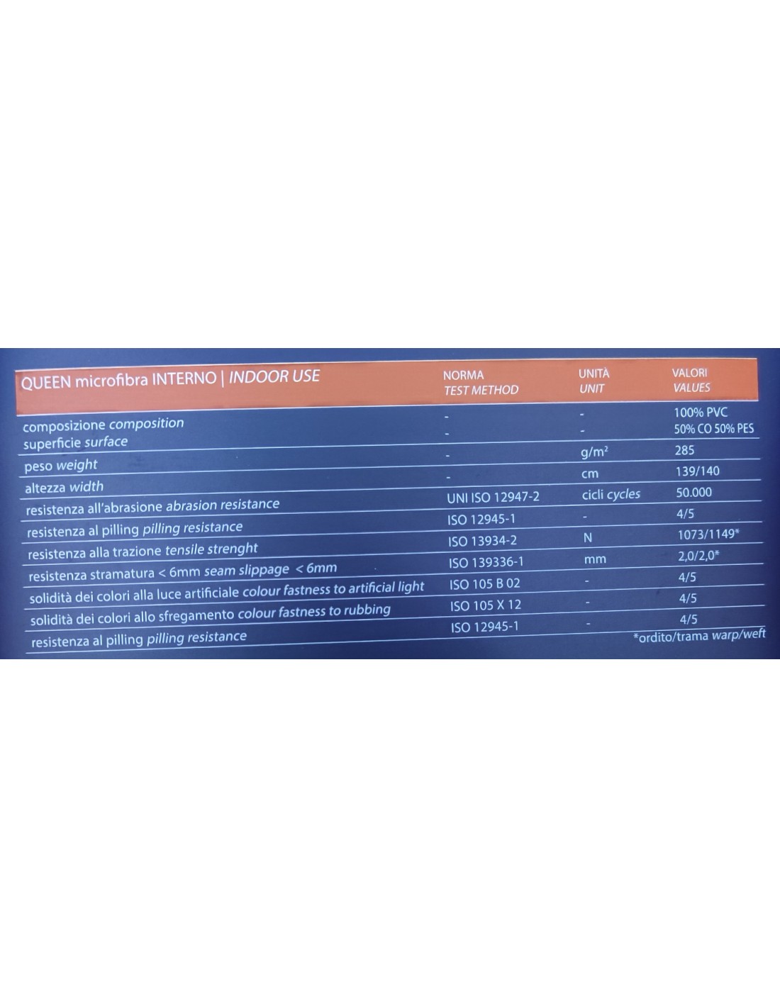 - Solidità colori alla luce artificiale