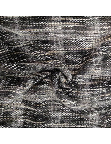 Tessuto misto lana, Double face, con un elegante disegno tipo chanel da un lato e un classico disegno scozzese dall'altro. Indicato per soprabiti, giacche, ecc