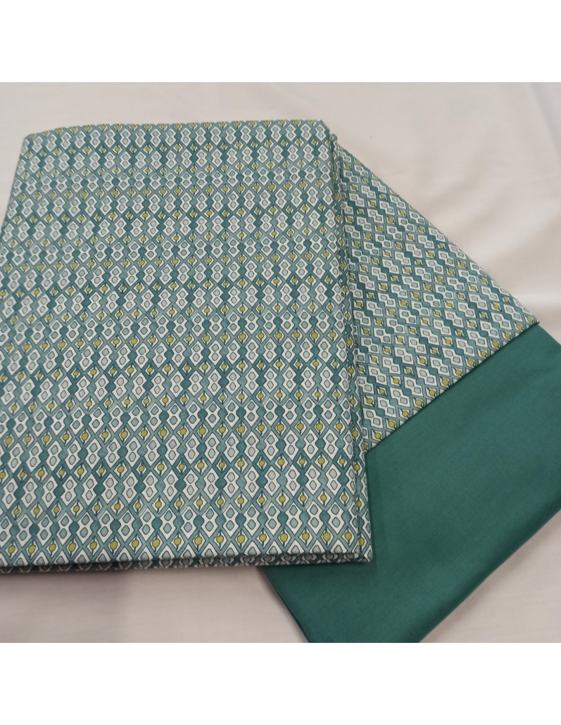 Completo letto singolo in puro cotone del brand italiano Fazzini disponibile in 2 colorazioni: Fantasia rosa e sotto tinta unita - Fantasia verde e sotto tinta unita