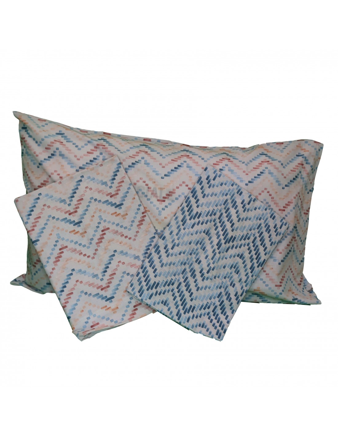 Il completo lenzuola Mattias del brand Maè by Via Roma, 60, è l'ideale se volete arredare un ambiente giovane e moderno; il set è composto da 1 lenzuolo da sopra stampato in fantasia geometrica multicolor su sfondo bianco, 1 sotto stampato con una fantasia geometrica azzurra su sfondo bianco e 1 federe stampate in fantasia geometrica multicolor su sfondo bianco. il completo lenzuolo Singolo prodotto e confezionato in Italia con tessuto di puro percalle cotone 150 fili-inch soffice e morbido, per offrirvi una piacevole sensazione al tatto ed ottenere un prodotto facile da lavare e stirare e che dura nel tempo.
