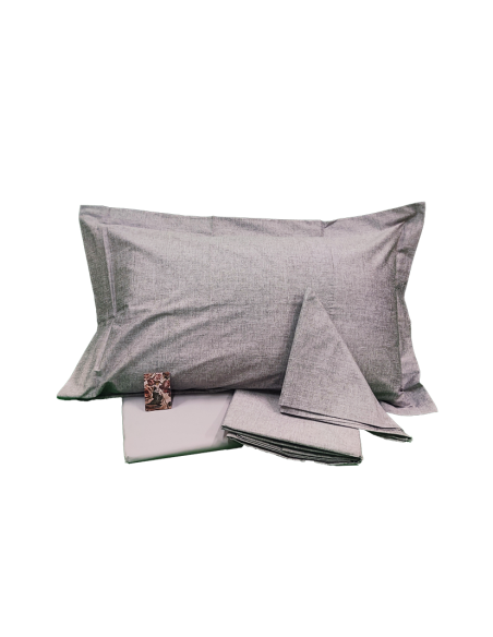 Completo letto Matrimoniale in raso 300 Tc di puro cotone stampato, fantasia geometrica sui toni del grigio, Brand italiano Fazzini