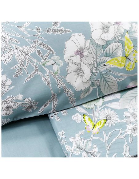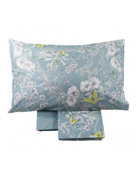 Il completo di lenzuola Fazzini Farfalle è un bellissimo esempio di lenzuolo con effetto copriletto, caratterizzato da una stampa frontale completa sul lenzuolo di sopra.