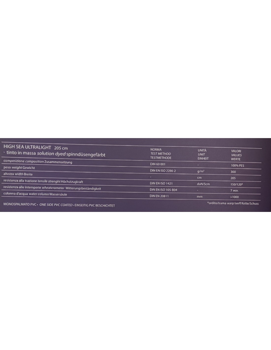 100% poliestere monospalmato PVC.