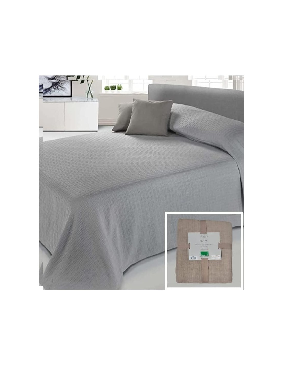 Copriletto Singolo Clara del brend Italiano Cavalieri, con lavorazione a Jacquard color corda, perfetto per ricoprire il vostro letto nel periodo primaverile ed estivo.