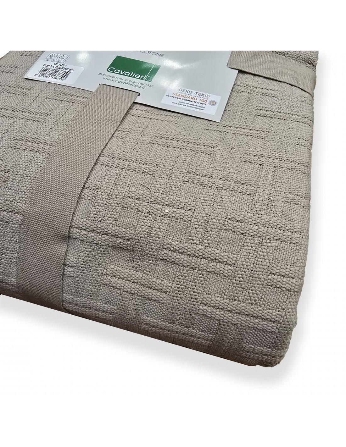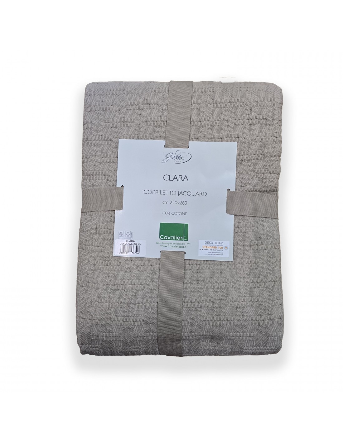 Copriletto Piazza e mezza Clara del brend Italiano Cavalieri, con lavorazione a Jacquard color corda, perfetto per ricoprire il vostro letto nel periodo primaverile ed estivo.