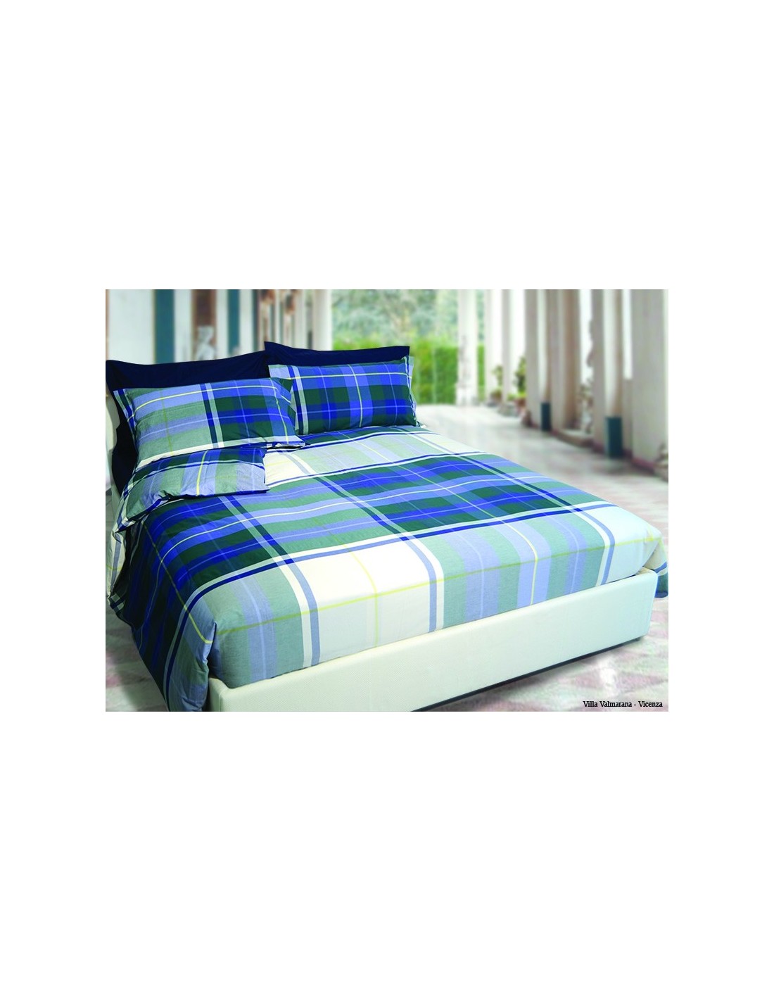 Eleganza e tradizione. Parure Copripiumino Matrimoniale Valmarana del brand italiano Inhom. Realizzata in puro cotone tinto in filo con un'intramontabile fantasia scozzese. La lavorazione tinto in filo assicura colori brillanti e duraturi.