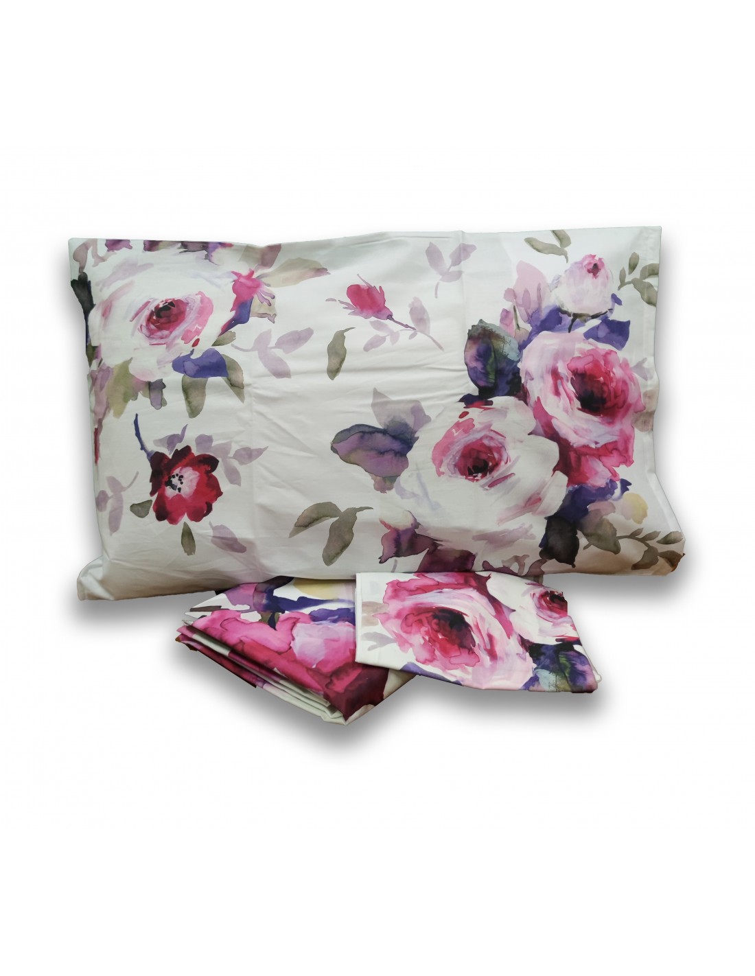 Parure Copripiumino New Charm del Brand italiano Via Roma60 , in percalle di puro cotone. La Parure copripiumino presenta una romantica fantasia Floreale . La fantasia è presente sia sulle federe e sulla faccia superiore del sacco, entrambi in percalle di puro cotone.