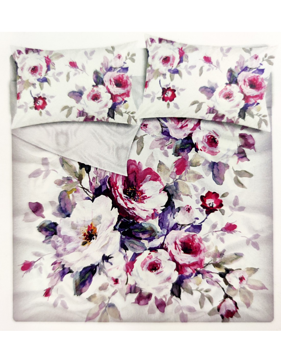 Parure Copripiumino New Charm del Brand italiano Via Roma60 , in percalle di puro cotone. La Parure copripiumino presenta una romantica fantasia Floreale . La fantasia è presente sia sulle federe e sulla faccia superiore del sacco, entrambi in percalle di puro cotone