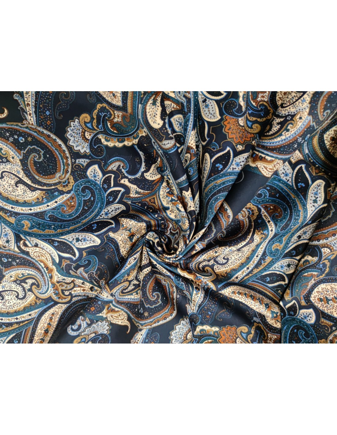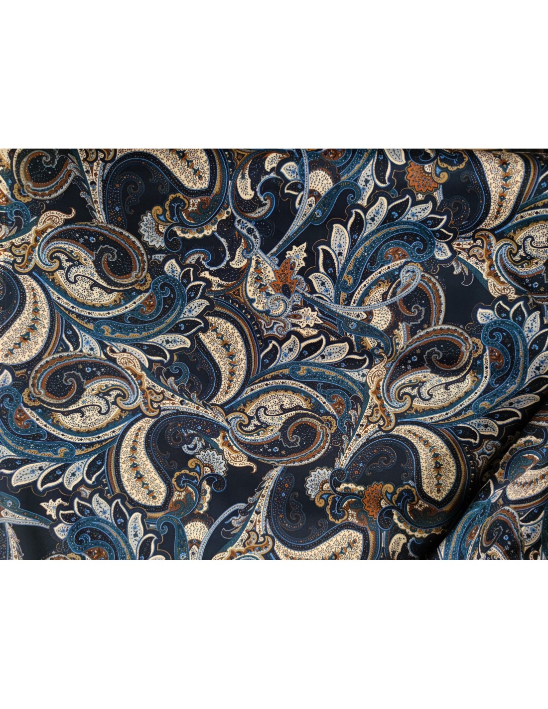 Tessuto misto Cpotone con lavorazione a Gabardine, fantasia cachemire, molto morbido e caldo al tatto. Ideale per la stagione Autunno/Inverno