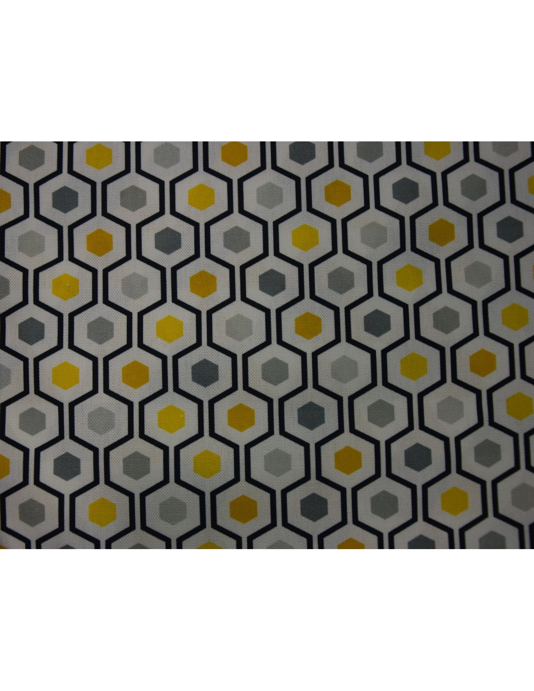 Tessuto in puro cotone stampato in fantasia geometrica Symmetric con disegno a esagoni incatenati del Brand italiano Premium Interior, By Croce's collection ottimo per realizzare arredi letto, coperture per divani, cuscini e decorazioni