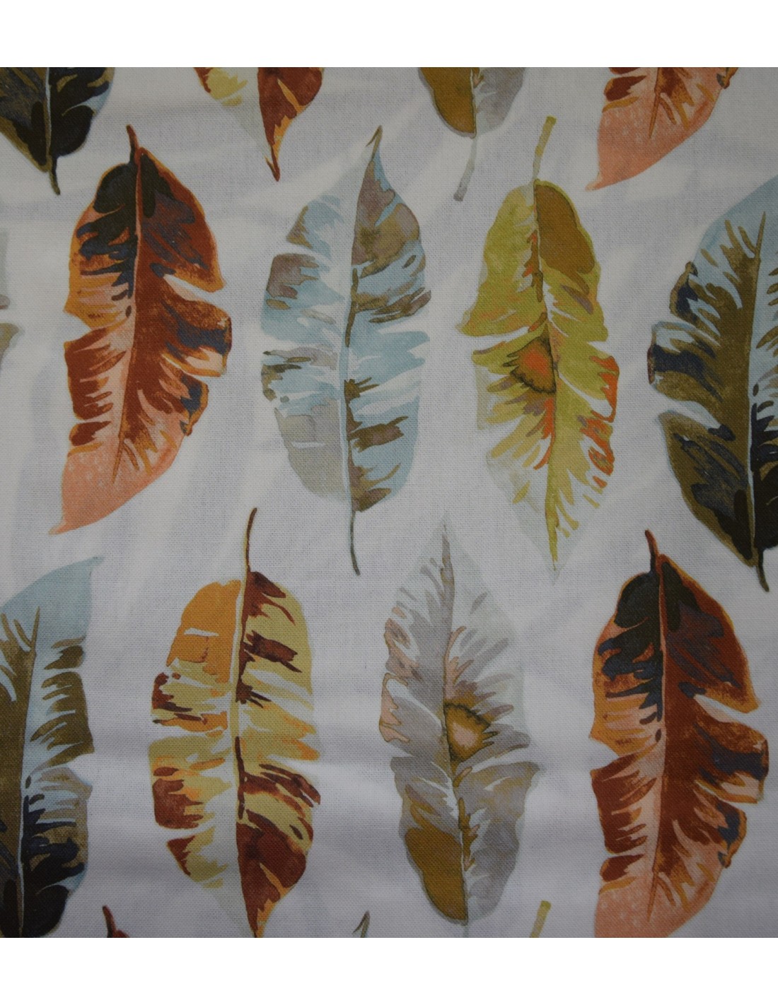 Tessuto in puro cotone stampato "Amazonica". Il disegno Foliage su uno sfondo bianco del Brand italiano Premium Interior, By Croce's collection ottimo per realizzare arredi letto, coperture per divani, cuscini e decorazioni