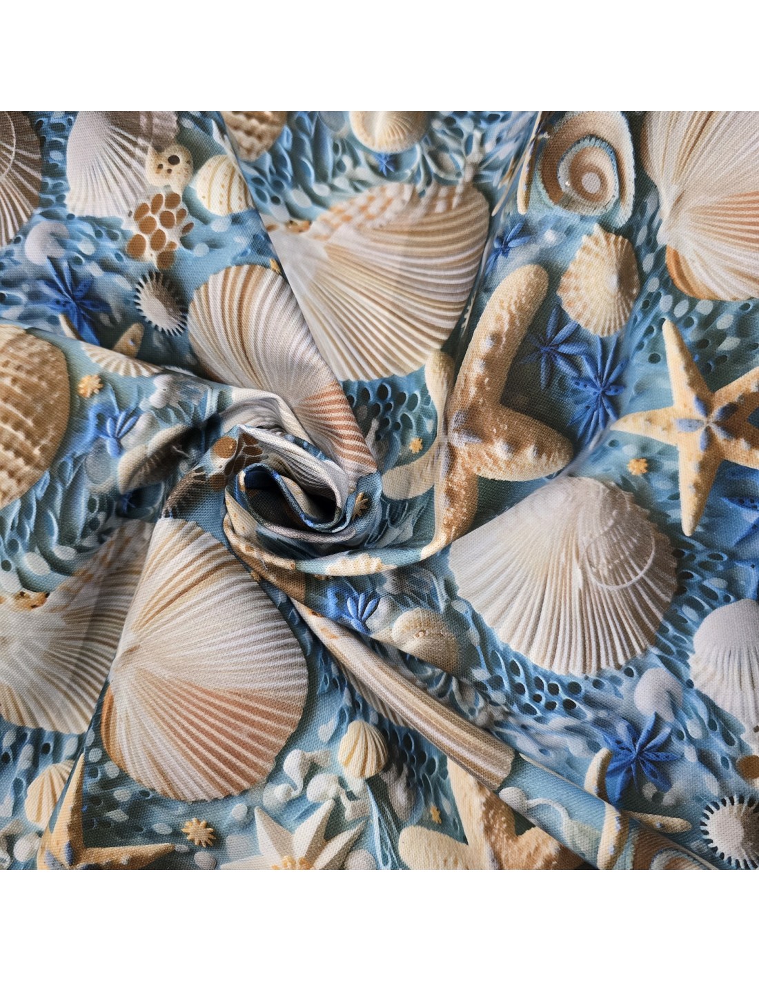 Tessuto PANAMA di Cotone Stampa 4D - Fantasia Marina (Gusci e Stelle Marine) - H 280 cm