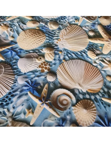 Porta l'atmosfera marina in casa! Tessuto PANAMA di cotone, leggero (240 gr/mq) con una Stampa 4D iper-realistica di gusci e stelle marine. Ideale per ambienti estivi e progetti decorativi d'impatto. Altezza 280 cm.