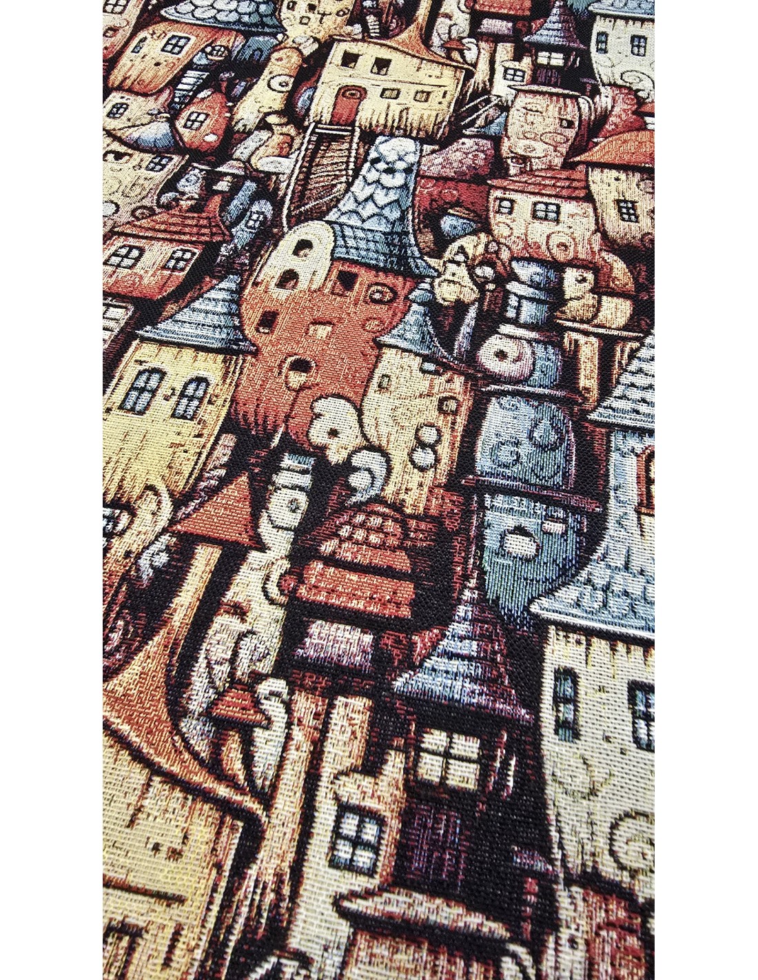 Lasciati incantare dal nostro Gobelin "Borgo Incantato" in misto cotone (60% Cotone - 40% Poliestere) con una straordinaria fantasia di casette e architetture artistiche. Ideale per dare un tocco fiabesco, creativo e audace a qualsiasi ambiente. Con altezza 280 cm e peso 300 gr/mq.