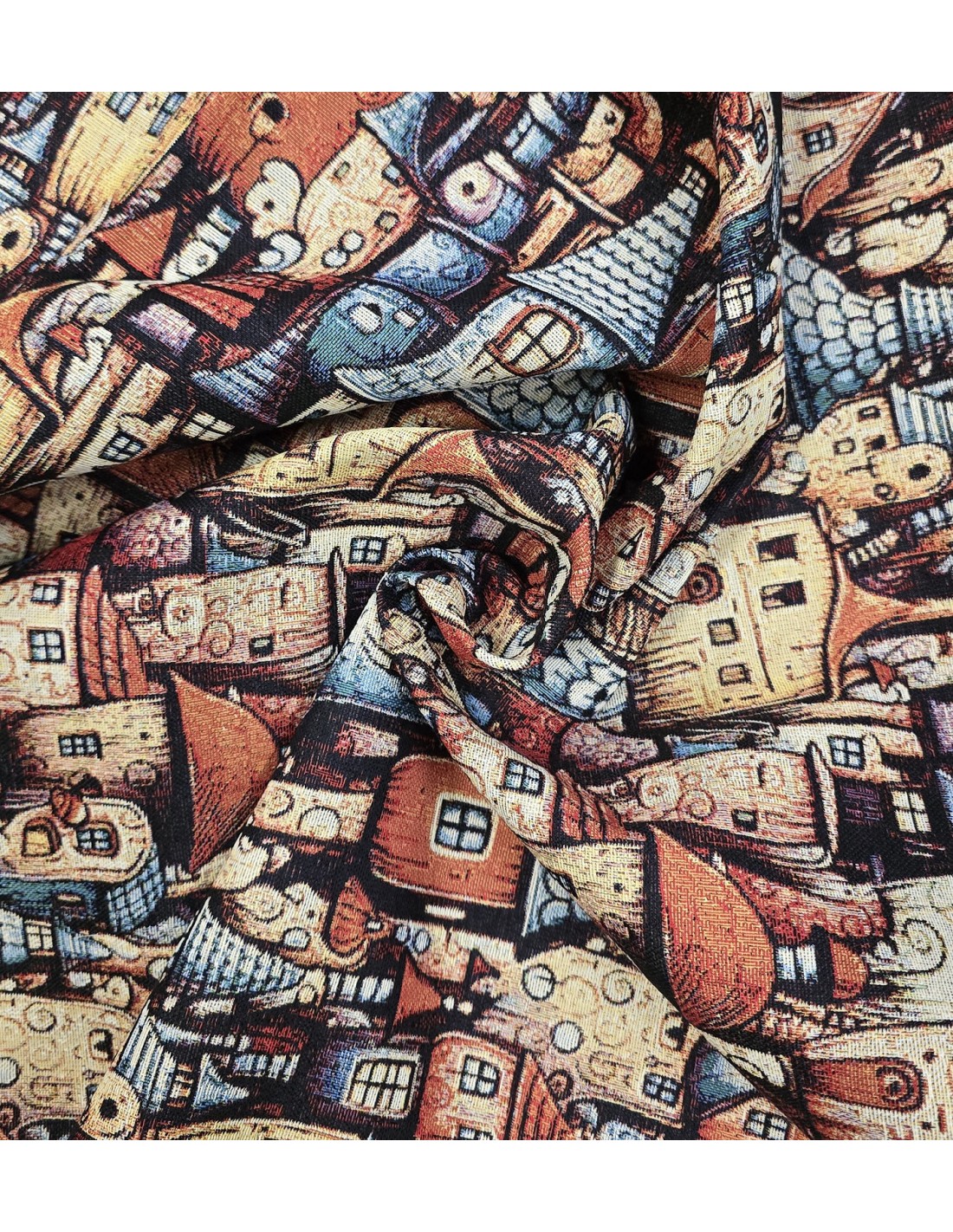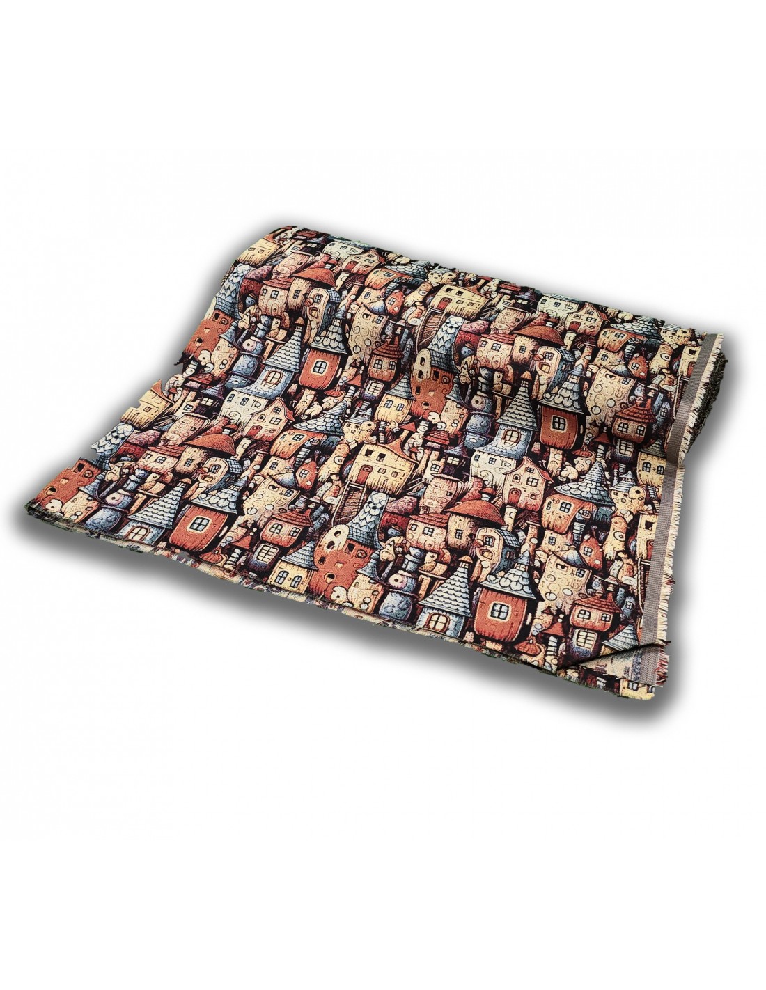 Tessuto Gobelin Borgo Incantato in Misto Cotone (Fantasia Casette Artistiche) - H 280 cm