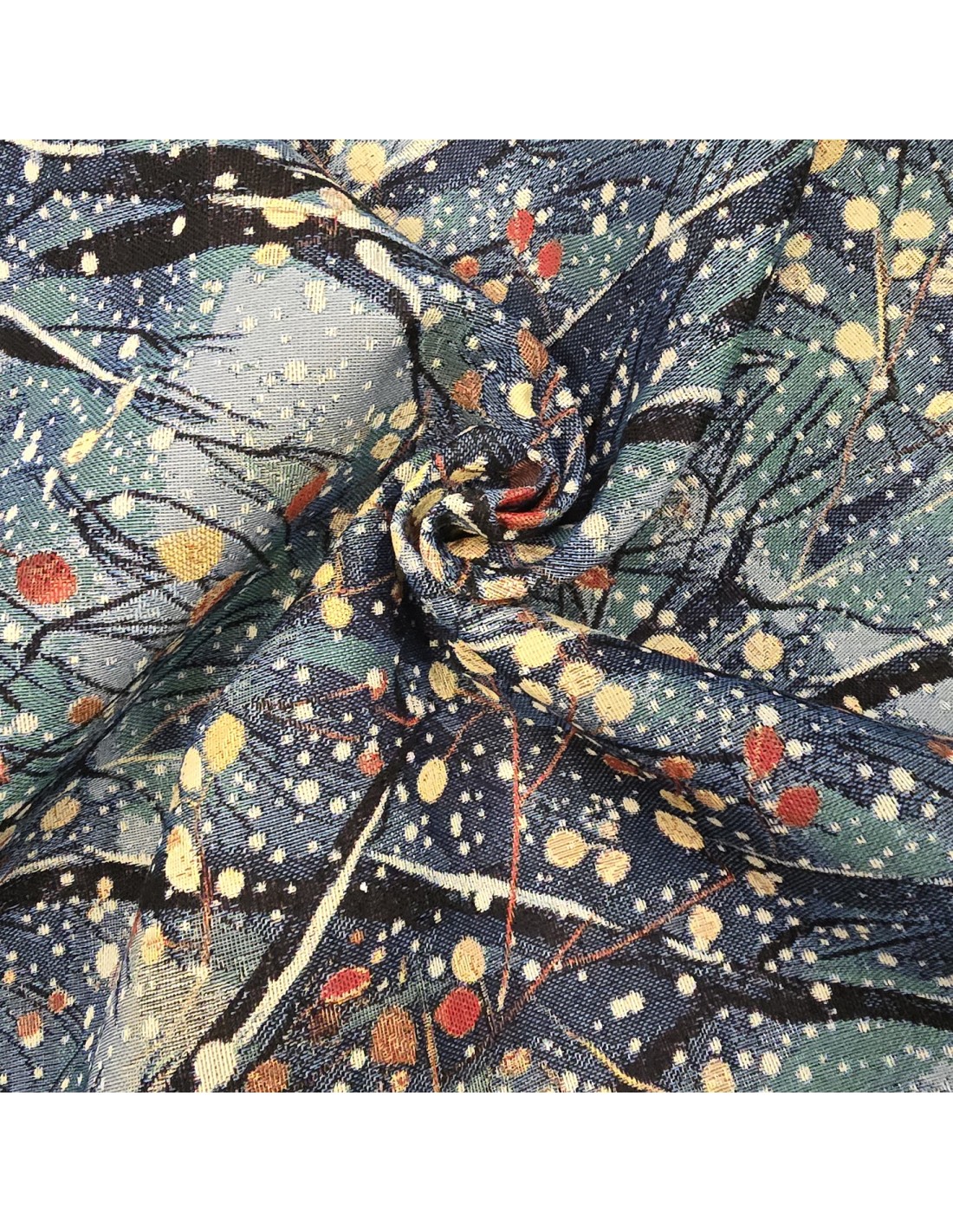 Il Gobelin "Bosco Invernale" (60% Cotone - 40% Poliestere) è un tessuto d'arredo poetico che evoca un paesaggio innevato con alberi stilizzati e tocchi di colore vibranti. Ideale per infondere un'atmosfera calda e sognante nei tuoi interni. Altezza 280 cm.