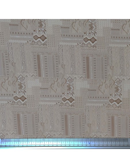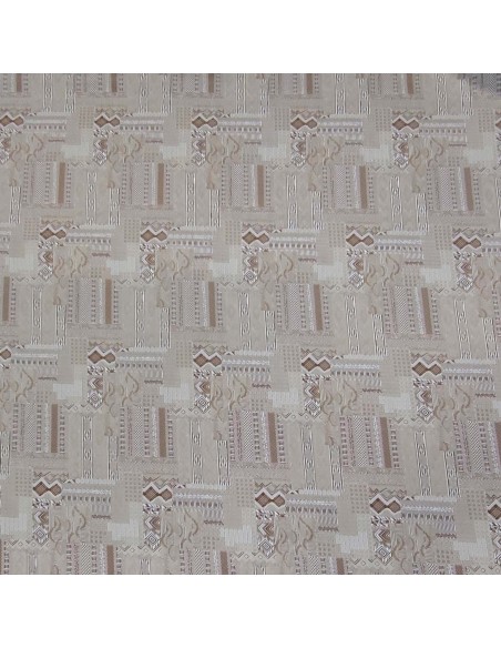 Tessuto in poliestere con lavorazione a jacquard, fantasia geometrica sui toni del sabbia. Ideale per la stagione Autunno/Inverno