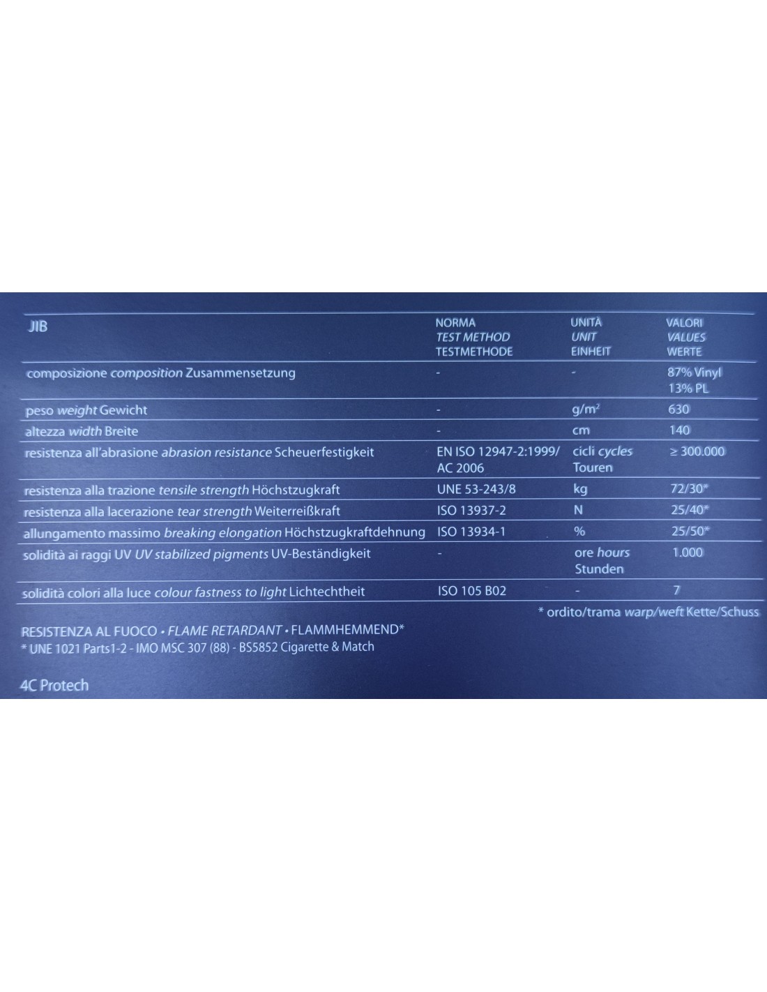 Materiale: spalmatura 87% vinile,13% polietilene – supporto PES 100%