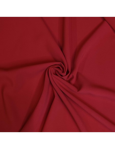 Tessuto in misto viscosa con lavorazione crepe rasato bielastico in tinta unita color rosso. Caldo e morbida al tatto con un ottima caduta ideale per la stagione autunno/inverno.