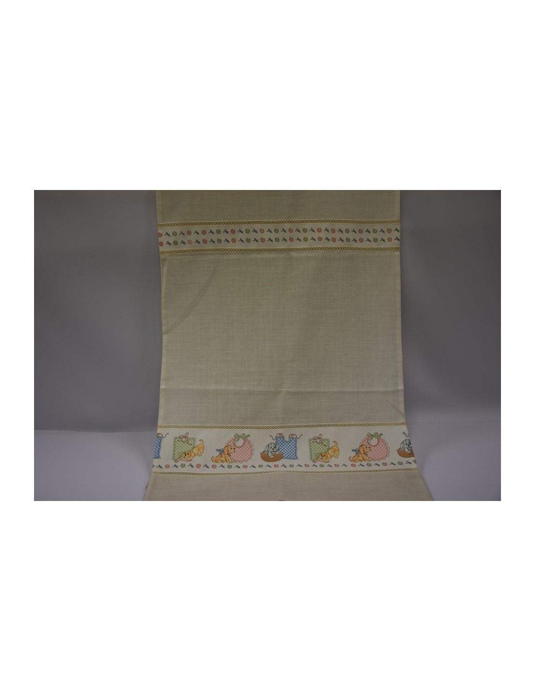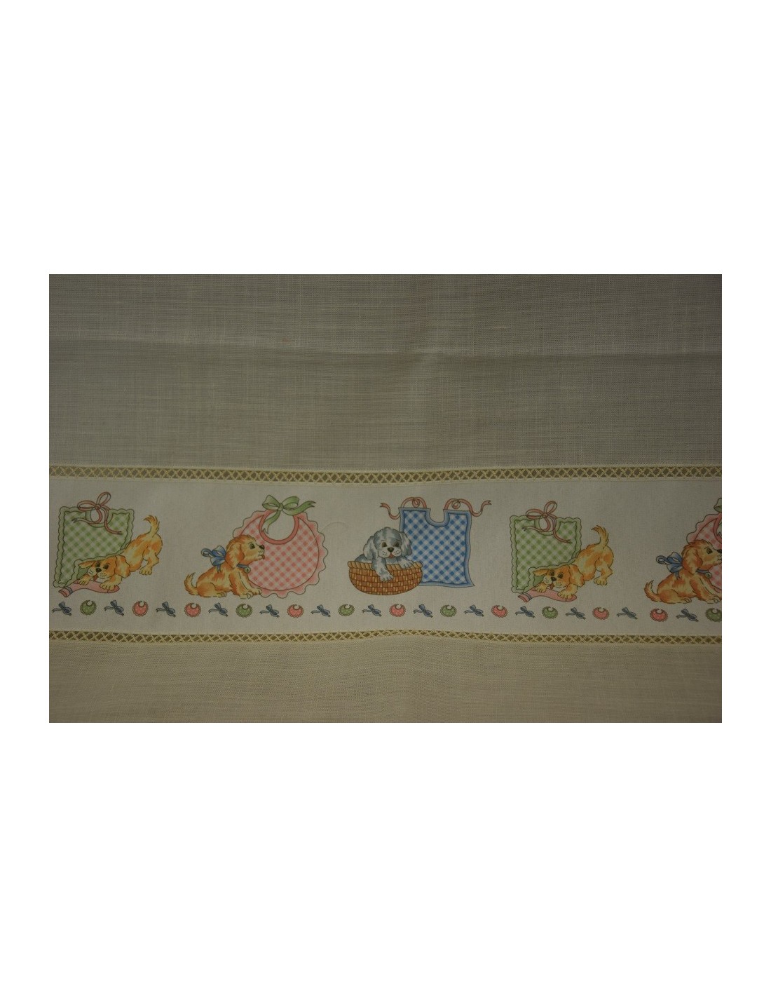 Tendone 30% lino 70% poliestere. Tenda con torrette e bordo, fantasia da bambino.
