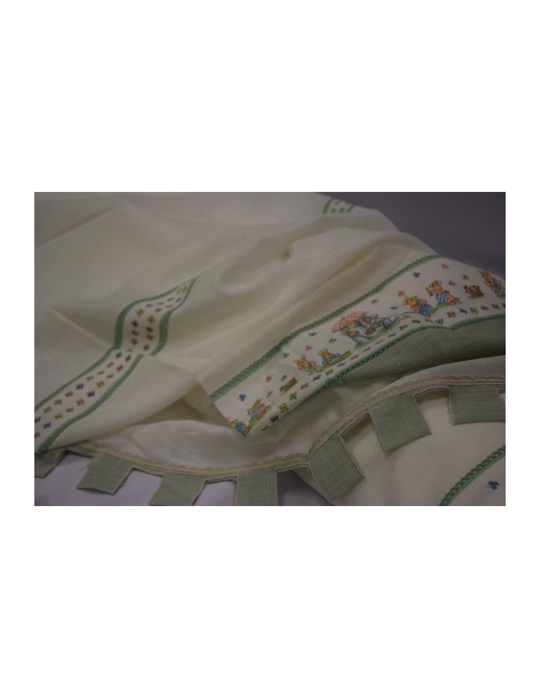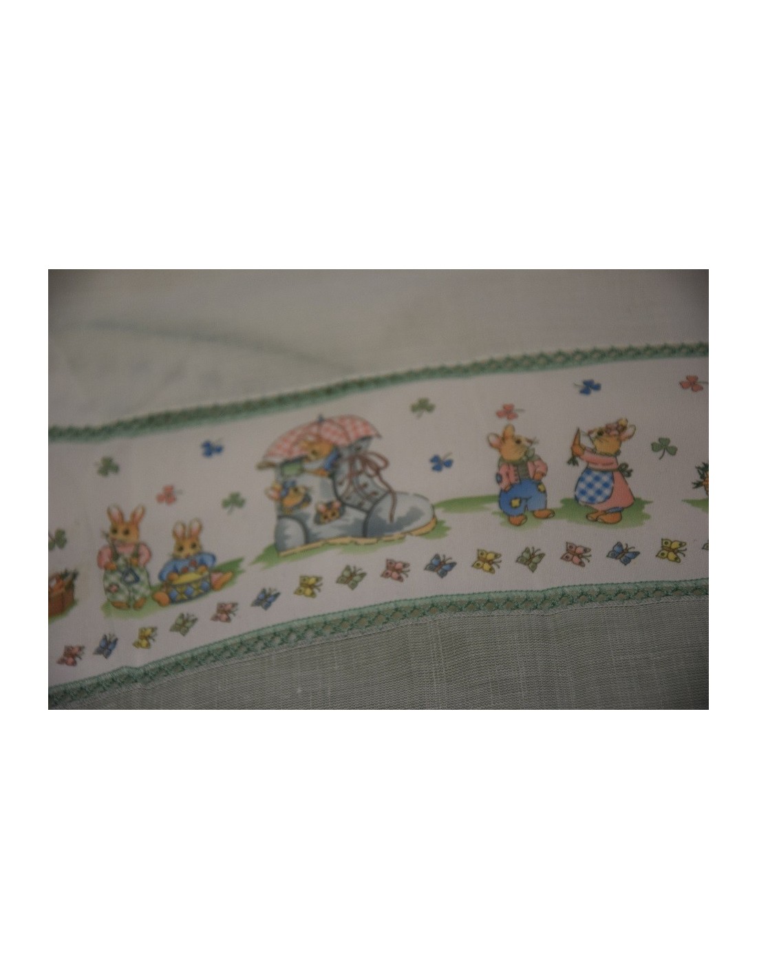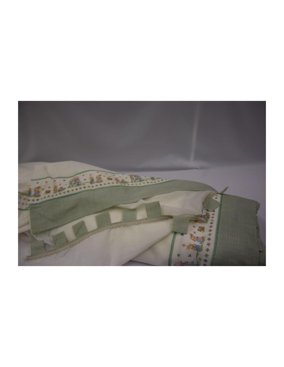 Tendone 30% lino 70% poliestere. Tenda con torrette e bordo, fantasia da bambino.