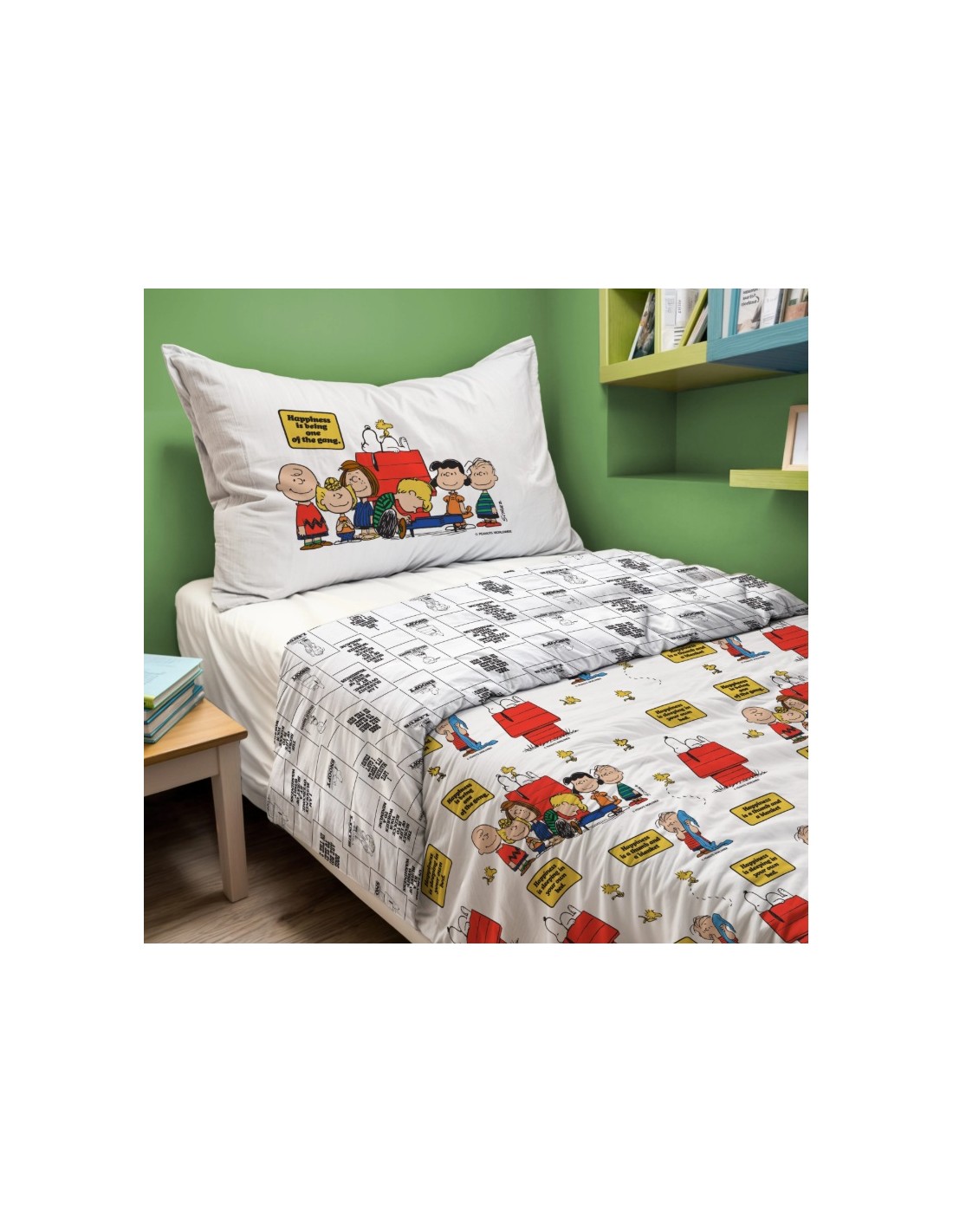 Questo set di biancheria da letto cattura l'essenza del celebre fumetto, celebrando l'amicizia con la frase iconica: "Happiness is being one of the gang" (La felicità è far parte della banda).