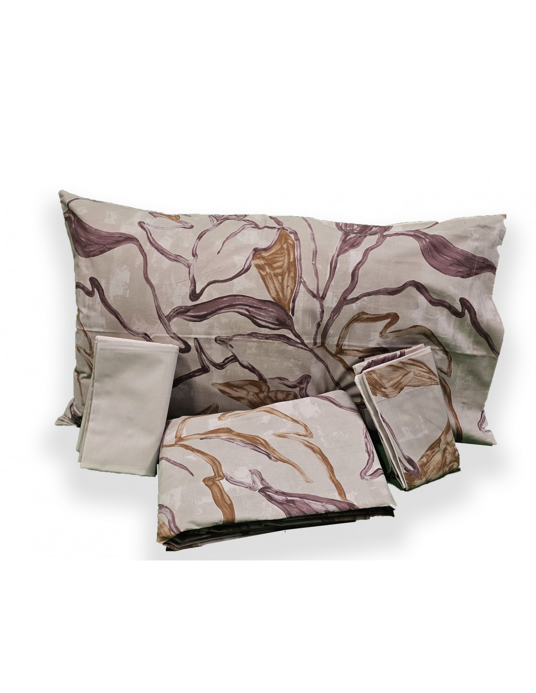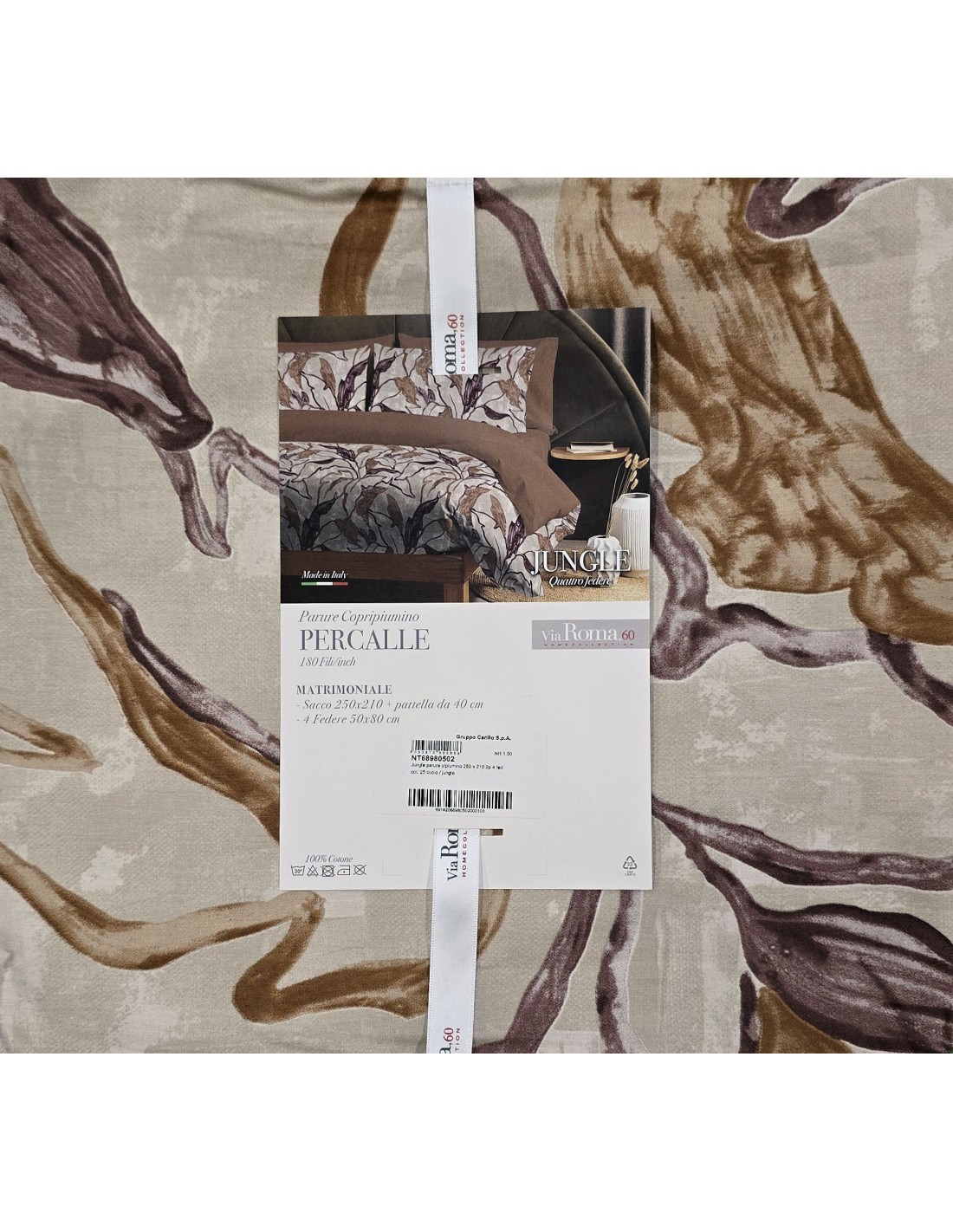 Parure Copripiumino Matrimoniale Jungle (Cuoio) - Puro Percalle 180 fili - Maè by Via Roma 60