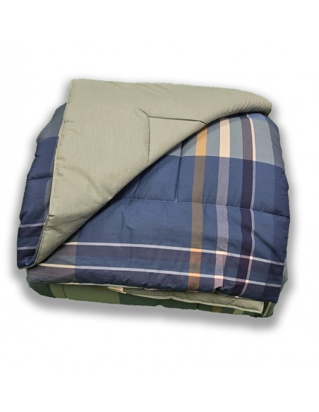 La trapunta Lauren è pensata per chi non vuole rinunciare all'alta qualità dei tessuti naturali anche d'inverno. Il rivestimento è realizzato in Percalle 100% Cotone, noto per la sua fitta tessitura (180 fili/Inch), che garantisce una mano liscia, fresca e straordinariamente resistente. La fantasia geometrica/quadrettata nei toni del blu, grigio e giallo aggiunge un tocco di eleganza classica e intramontabile alla tua camera da letto.