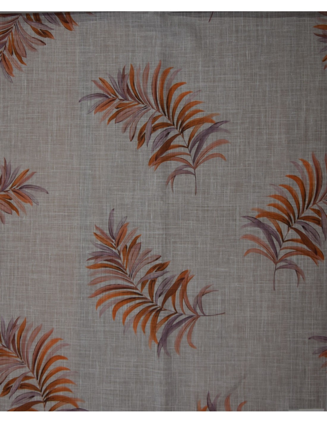 Tessuto in misto lino per tendaggi del brand via roma 60, una moderna fantasia Foliage. Tessuto già piombato sul fondo