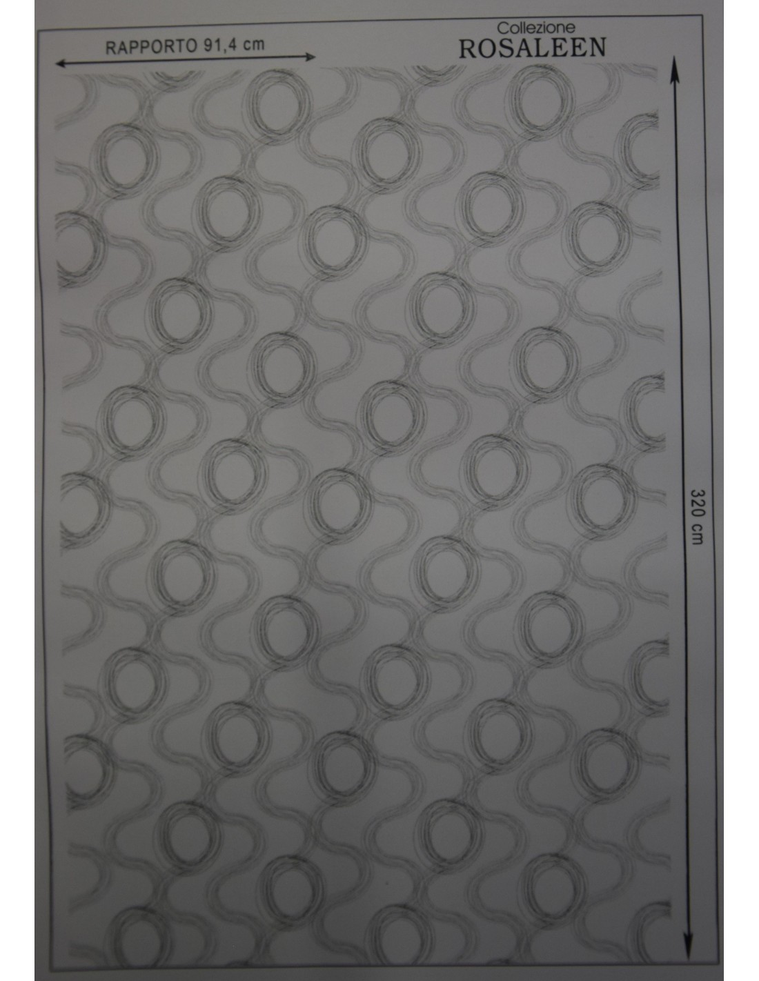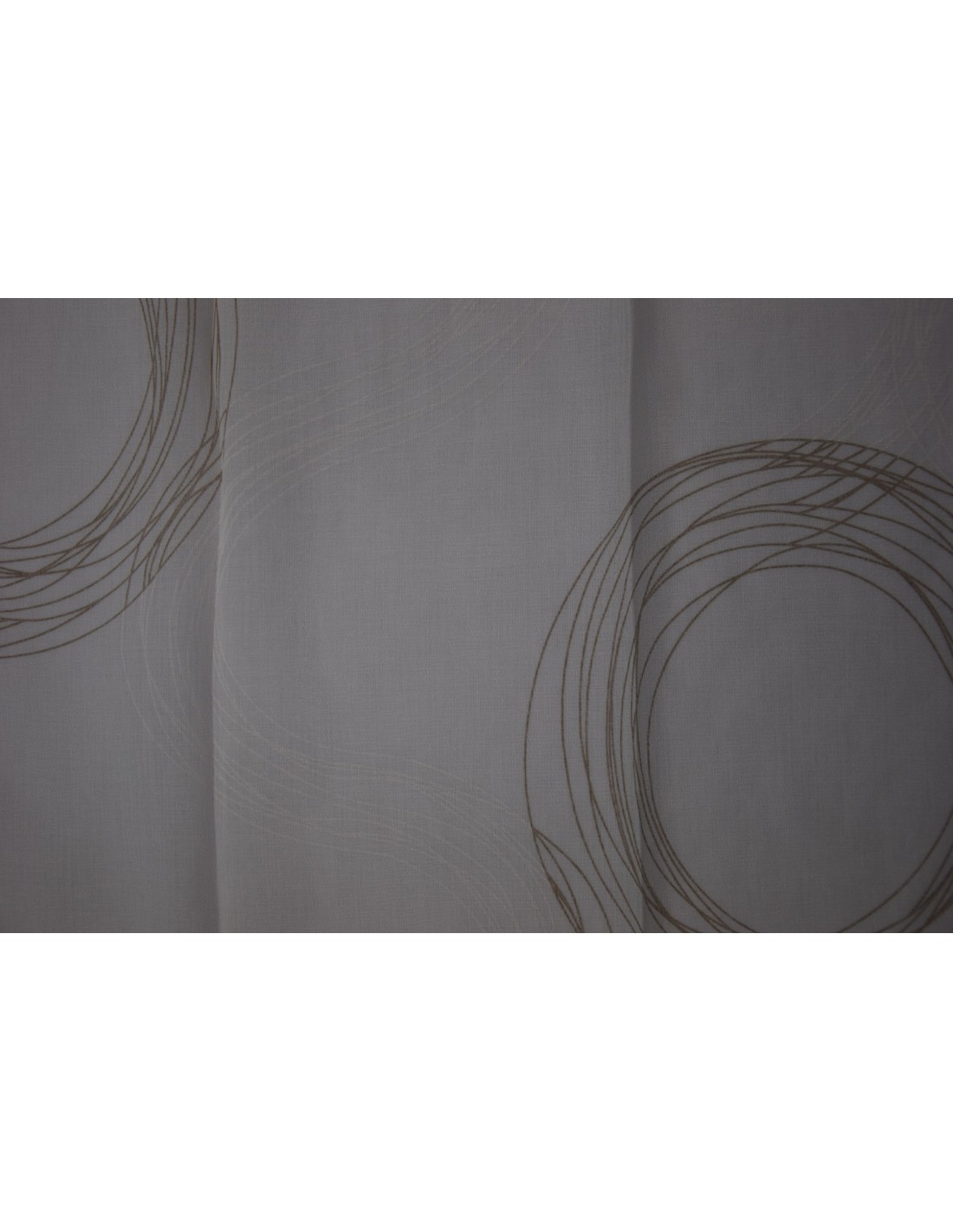 Tessuto stampato con fantasia a cerchi su fondo a trama regolare in poliestere abbastanza coprente ma filtrante. Idonea per realizzare molteplici modelli di tende , come arricciate ,pacchetti,tende a pannello ed a vetro . Tessuto della Collezione Rosaleen del brand italiano Via Roma, 60