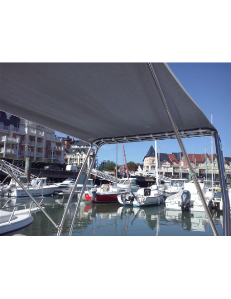 • Struttura Telescopica: La struttura in acciaio inox 316 non solo garantisce la massima resistenza all'ambiente marino, ma il design telescopico permette una regolazione rapida e flessibile della copertura, adattandosi alle diverse esigenze di ombra e angolazione.