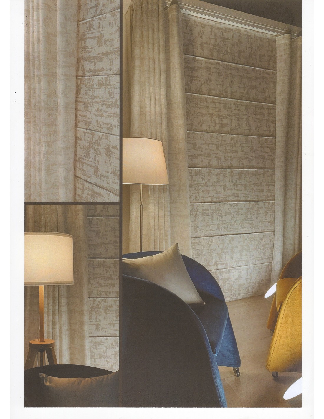 Tessuto per tendaggi in misto lino e poliestere della collezione My Whindows Style Blue Printed by Croce's Collection, trama a lino con disegno geometrico disponibile in 4 colorazioni.
