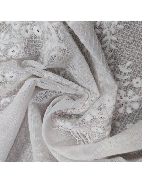 Tessuto da tendaggio in misto Lino e poliestere della collezione Yuro del brand italiano Via Roma60, trama effetto lino con lavorazione ricamata disponibile in 4 colori.