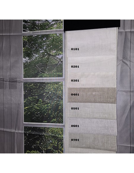 Tessuto per tendaggi in poliestere della collezione Mariangela con lavorazione effetto lino italiano Via Roma60. Disponibile in 7 differenti colori