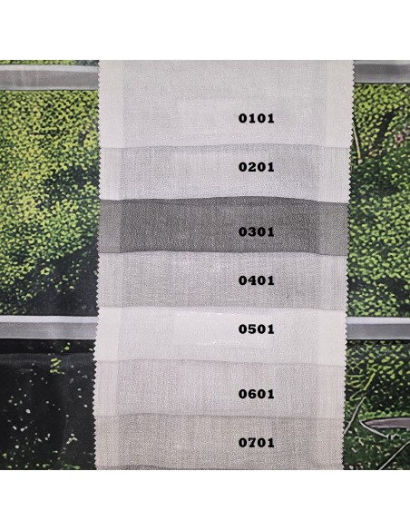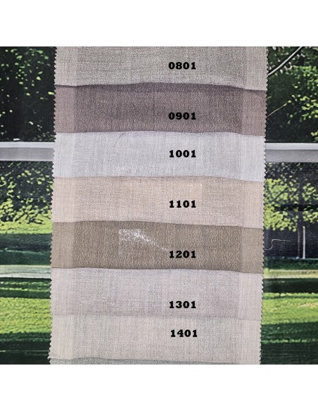 Tessuto per tendaggi in poliestere riciclato della collezione Rhonda Fr Recycled con lavorazione a crepella tinta unita del brand italiano Via Roma60. tessuto ignifugo classe1. Disponibile in 17 differenti colori