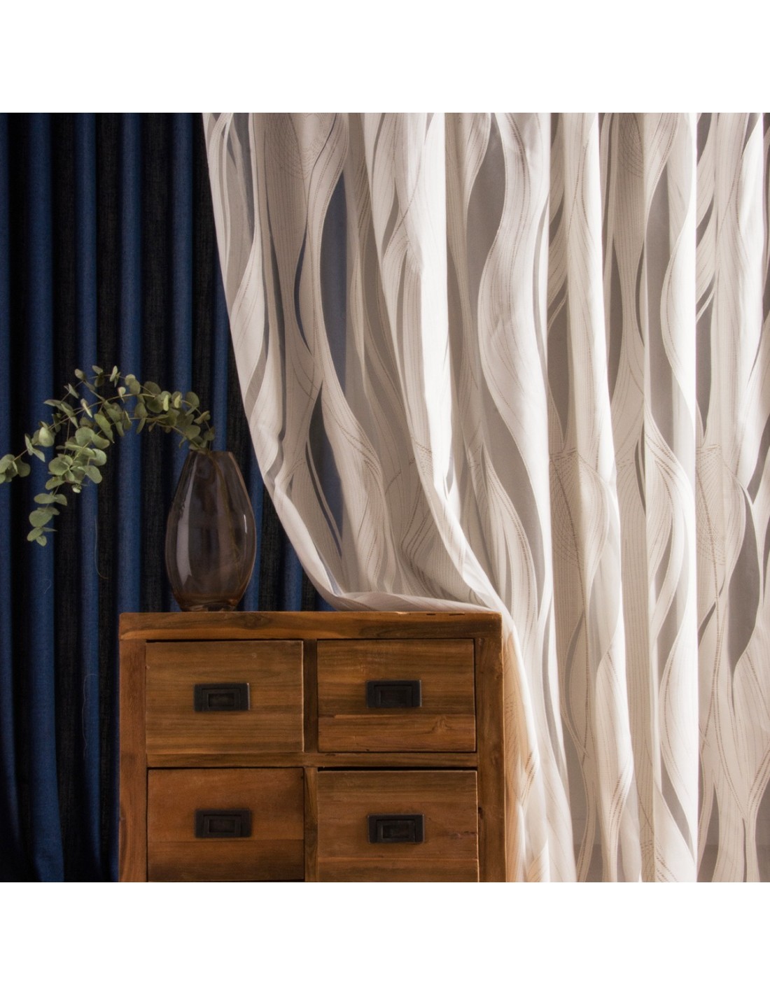 La tenda Liegi, collezione di Via Roma, 60, è stata concepita per chi ama il design dinamico. La tecnica di lavorazione dévoré genera un raffinato contrasto di trasparenze e opacità, realizzando un motivo a fasce verticali ondulate. L'effetto è quello di un velo che danza con la luce, arricchendo l'ambiente senza appesantirlo.