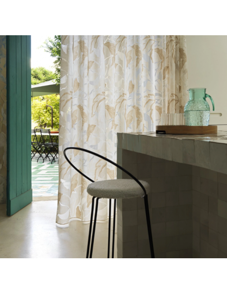 Eleganza e leggerezza si fondono nella Tenda Ponos di Via Roma, 60. Realizzata con la raffinata tecnica devorè, questa tenda in misto viscosa presenta un delicato motivo naturale che gioca con le trasparenze. Alta 300 cm e dotata di piombo finale per una caduta perfetta, è la scelta ideale per ambienti luminosi e sofisticati