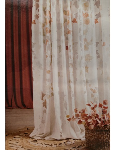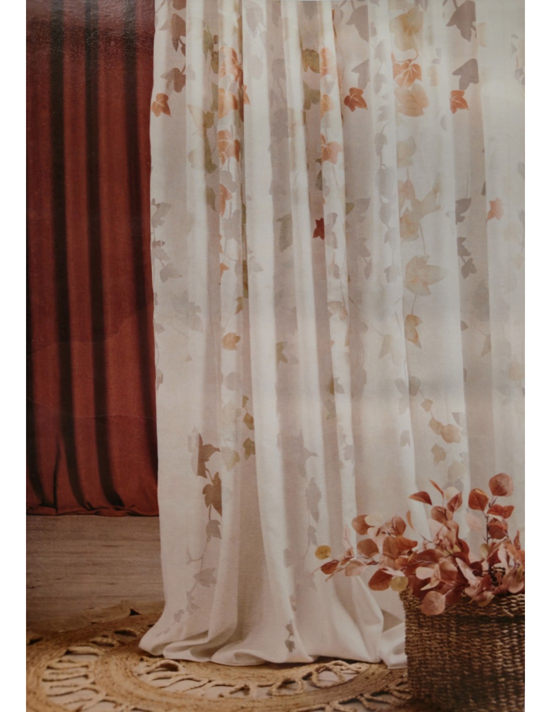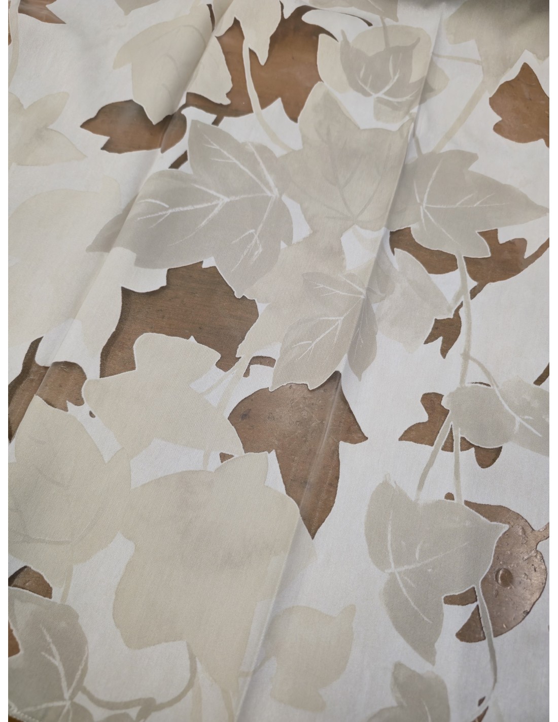 La tenda Poinè rappresenta l'eccellenza della decorazione d'interni firmata Via Roma, 60. Il disegno, un delicato rampicante di foglie, è realizzato con tecnica jacquard che dona tridimensionalità e lucentezza al tessuto.