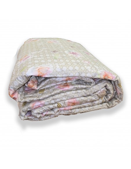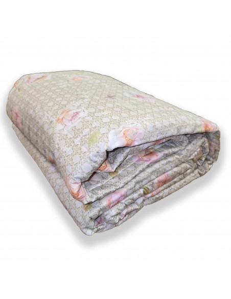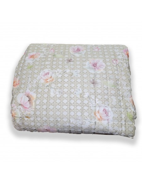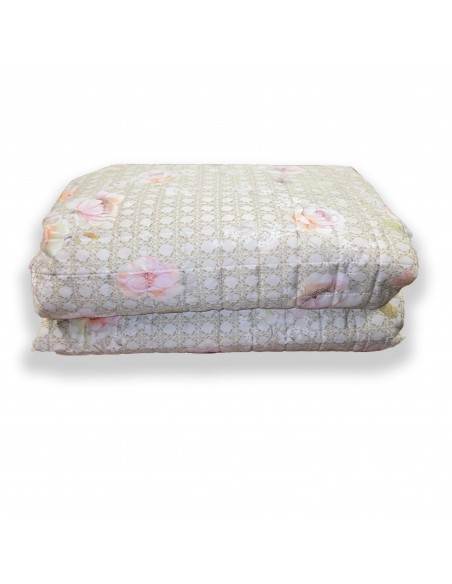 Quilt Matrimoniale con disegno Floreale su sfondo geometrico del brend italiano Cavalieri, stampato su puro cotone 100% italiano con tecnica della stampa digitale per rendere i dettagli della stampa ancora più nitidi