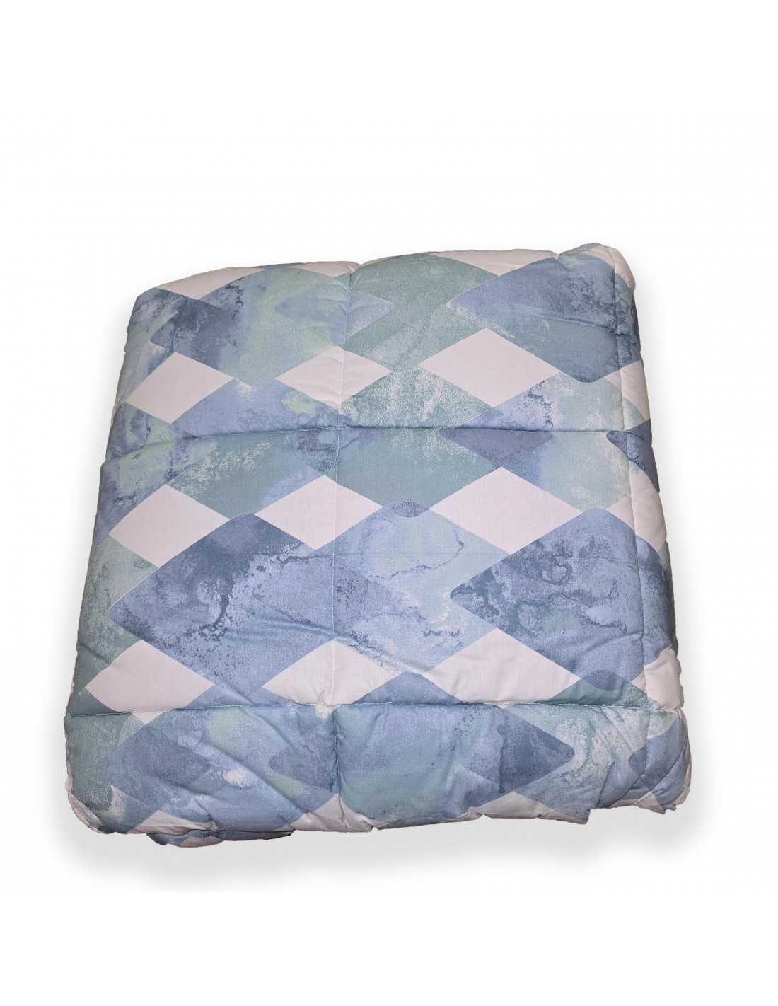 Trapunta singola "Giusy 7785 var32" in cotone e imbottitura Talko anallergica 300gr, fantasia con piume sui toni dell'azzurro del brand italiano Piazza Pitti Firenze by Cavalieri.