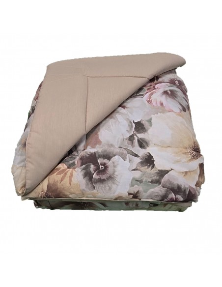 Calore naturale e design caldo! Trapunta Matrimoniale Monica di Via Roma 60, con calda imbottitura anallergica da 300 gr/mq. Realizzata in pregiato tessuto Percalle 100% Cotone (180 fili), presenta un'elegante fantasia floreale sui toni del Cuoio e del Tortora.